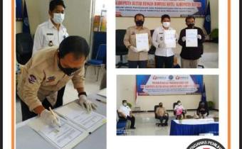 blitar.bawaslu.go.id – Ketua Bawaslu Kabupaten Blitar Abdul Hakam Sholahuddin menandatangani perjanjian kerja sama dengan Kepala Badan Narkotika Nasional (BNN) Kabupaten Blitar AKBP Bagus Hari Cahyono, Rabu (12/8/2020).